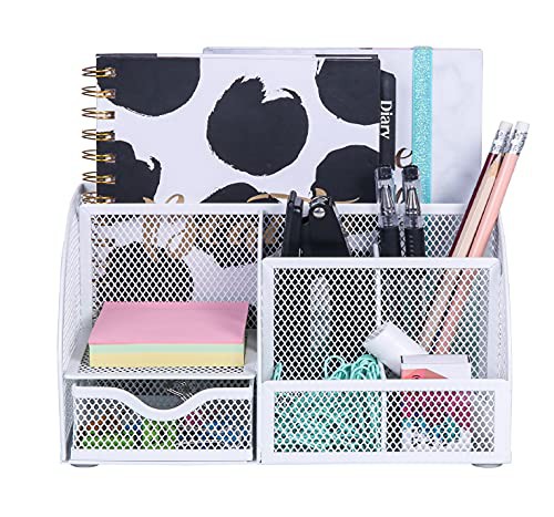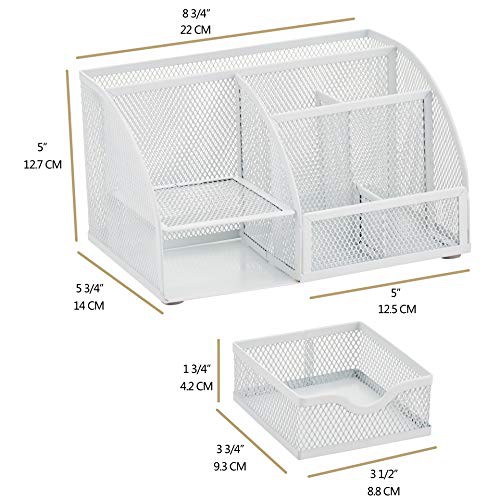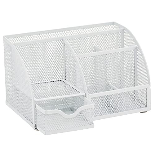 EXERZ Desk Organiser/Mesh Desk Tidy Caddy/Pencil Holder Multifunctional with 7 Compartments– White