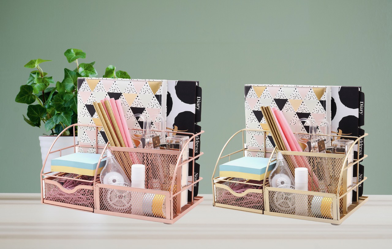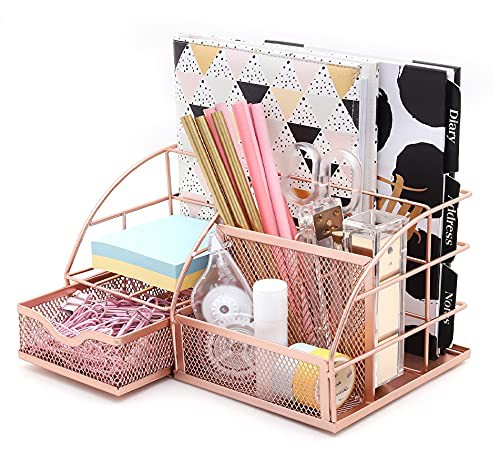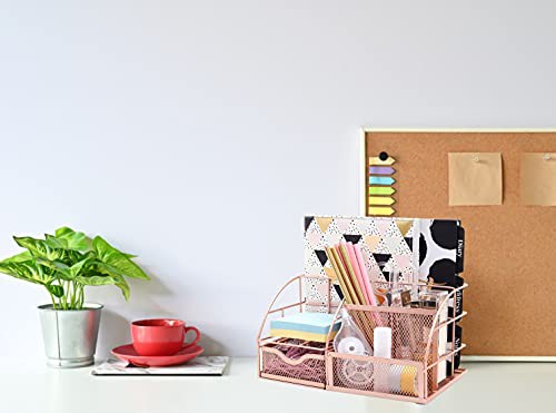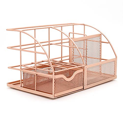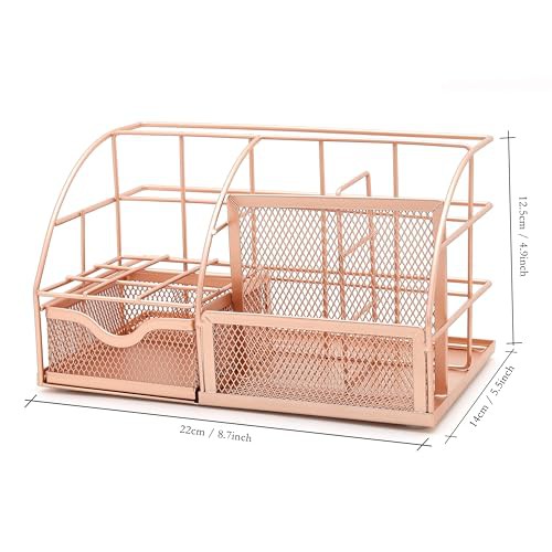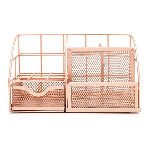 EXERZ Desk Organiser/Mesh Desk Tidy Caddy/Pencil Holder Multifunctional with 7 Compartments - Rose Gold