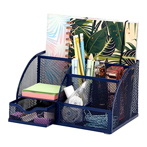 EXERZ Desk Organiser/Mesh Desk Tidy Caddy/Pencil Holder Multifunctional with 7 Compartments