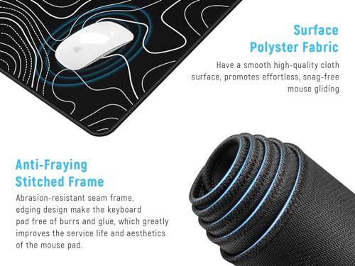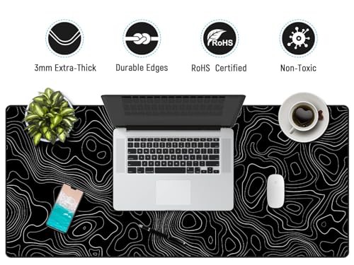 JIALONG Gaming Mouse Pad, Large Desk Pad, Office Desk Mat with Anti-Slip Base, Anti-wear Personalized Design, Mousepad with Black Topographic 35.4 x 15.7 inches