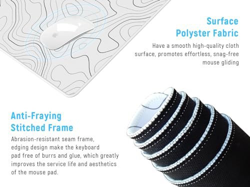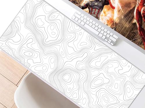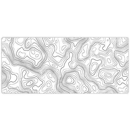 JIALONG Gaming Mouse Pad, Large Desk Pad, Office Desk Mat with Anti-slip Base, Anti-wear Personalized Design, Mousepad with White Topographic 35.4 x 15.7 inches