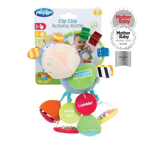 Playgro Horse Soft Baby Toys 3-6-12 Months Developmental, 3+ Months Rattles Teething Toys for Babies, Newborn & Infant Sensory Non-Toxic Plush Baby Rattle for Boy Girl with Clip Clop Activity Gift