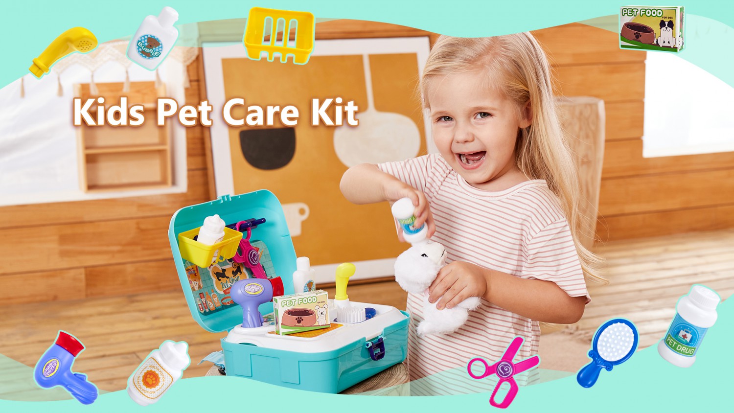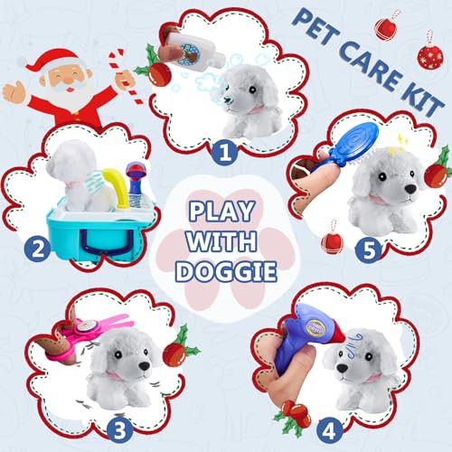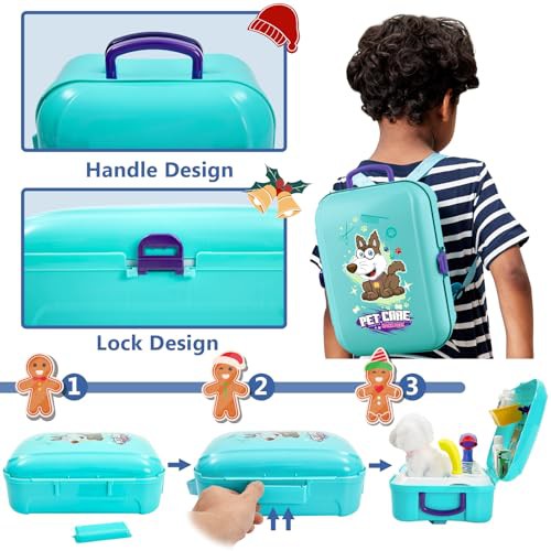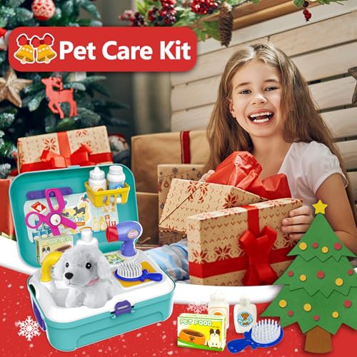 HERSITY Vet Toy Pet Care Kit Role Play Set Grooming Feeding Dog Games Backpack Toys for Kids 3 4 5 Years Old Girls Boys