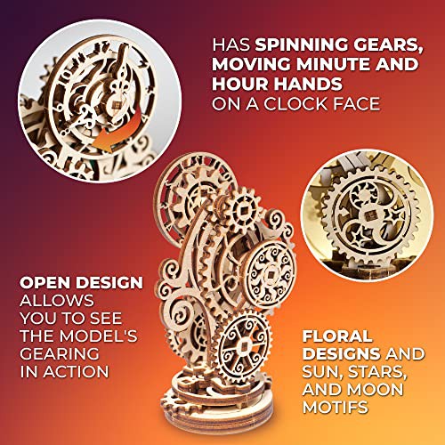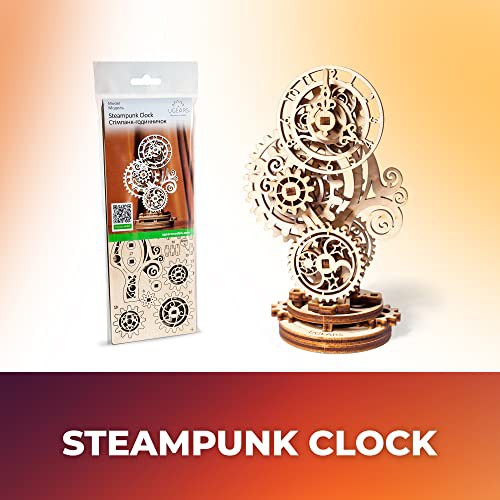 Ugears Steampunk Clock 3D Wooden Puzzle - Mechanical Wooden Clock - Adult Model Kits for Christmas and New Year - Magnificent Home Decoration