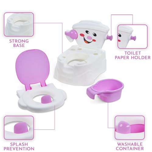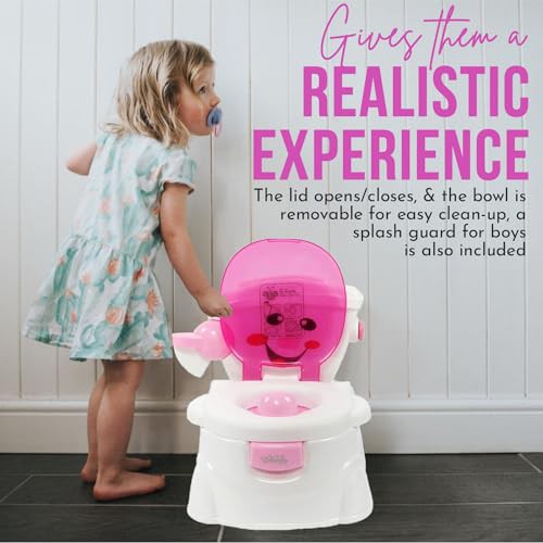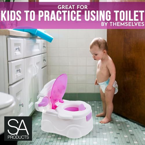 SA Products Kids Potty Training Toilet Seat with Splash Guard - Lightweight Portable Potty Great for Travel - Fun Kids Toilet Seat to Encourage Practice for Toddler Baby Children Infants - Pink