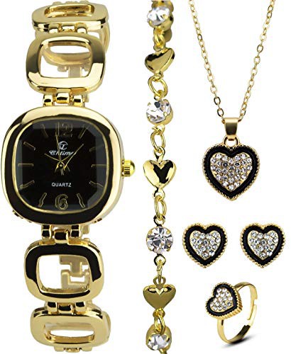 Gift Set Women's Watch Black - Jewelry Set- Necklace-Ring- Earrings - Band