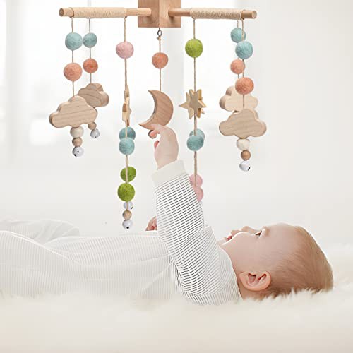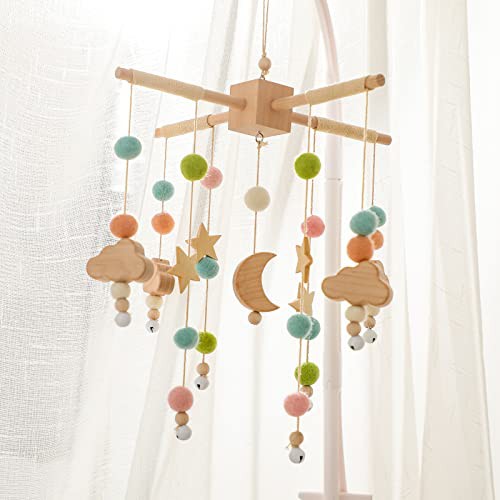 let's make Mobile Baby Wood + Wool Balls, Wind Chimes, Nursery Hammock Bells, Newborn Gifts for Baby Girls or Boys