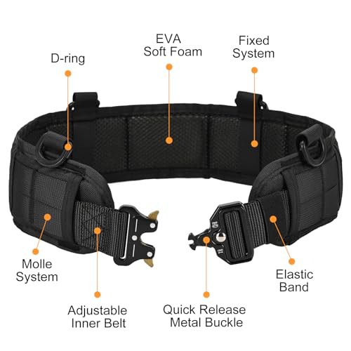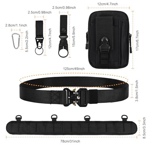 ['Adjustable and Removal: Total length of the tactical belt is 31inch/78cm, inner belt length is 49 inch/125cm, fit for waist up to 45 inches. The tactical molle battle belt is detachable and adjustable, the inner belt can be used alone. When be used together, the inner belt can be installed inside or outside the battle belt. You can get the perfect adjustment to the change in stature.', 'Adjustable and Removal: Total length of the tactical belt is 31inch/78cm, inner belt length is 49 inch/125cm, fit for waist up to 45 inches. The tactical molle battle belt is detachable and adjustable, the inner belt can be used alone. When be used together, the inner belt can be installed inside or outside the battle belt. You can get the perfect adjustment to the change in stature.', 'Adjustable and Removal: Total length of the tactical belt is 31inch/78cm, inner belt length is 49 inch/125cm, fit for waist up to 45 inches. The tactical molle battle belt is detachable and adjustable, the inner belt can be used alone. When be used together, the inner belt can be installed inside or outside the battle belt. You can get the perfect adjustment to the change in stature.', 'Adjustable and Removal: Total length of the tactical belt is 31inch/78cm, inner belt length is 49 inch/125cm, fit for waist up to 45 inches. The tactical molle battle belt is detachable and adjustable, the inner belt can be used alone. When be used together, the inner belt can be installed inside or outside the battle belt. You can get the perfect adjustment to the change in stature.', 'Adjustable and Removal: Total length of the tactical belt is 31inch/78cm, inner belt length is 49 inch/125cm, fit for waist up to 45 inches. The tactical molle battle belt is detachable and adjustable, the inner belt can be used alone. When be used together, the inner belt can be installed inside or outside the battle belt. You can get the perfect adjustment to the change in stature.']