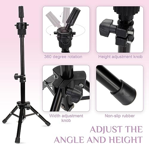 Neverland Beauty Hairdressing Head with Tripod 26" Hair Training Head Hairdressing Practice Mannequin Manikin Doll Gradient Axe Makeup with Tripod + Hair Styling Braid Accessoires Set