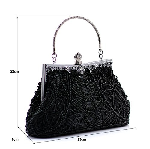HONGCI Glitter Fashion Beaded Sequin Pearl Clutch Bag for Women - Vintage Beaded Evening Bag, Bridal Bag, Clutch Handbag for Wedding, Party, Prom