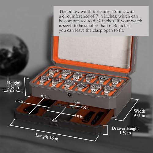 ["WATCH DISPLAY CASE FOR MEN AND WOMEN: Each cushion in our watch organizer holds a small or large watch (up to 55mm) neatly in place next to each other and fits watches sized 16.5 cm and above. Plus, there is plenty of space between the lid and cushions of our watch holder to accommodate watches of all sizes. Rothwell watch boxes are perfect gifts for Father’s Day, birthdays, anniversaries, Valentine's day, graduations, holidays, retirement, and corporate events.", "WATCH DISPLAY CASE FOR MEN AND WOMEN: Each cushion in our watch organizer holds a small or large watch (up to 55mm) neatly in place next to each other and fits watches sized 16.5 cm and above. Plus, there is plenty of space between the lid and cushions of our watch holder to accommodate watches of all sizes. Rothwell watch boxes are perfect gifts for Father’s Day, birthdays, anniversaries, Valentine's day, graduations, holidays, retirement, and corporate events.", "WATCH DISPLAY CASE FOR MEN AND WOMEN: Each cushion in our watch organizer holds a small or large watch (up to 55mm) neatly in place next to each other and fits watches sized 16.5 cm and above. Plus, there is plenty of space between the lid and cushions of our watch holder to accommodate watches of all sizes. Rothwell watch boxes are perfect gifts for Father’s Day, birthdays, anniversaries, Valentine's day, graduations, holidays, retirement, and corporate events.", "WATCH DISPLAY CASE FOR MEN AND WOMEN: Each cushion in our watch organizer holds a small or large watch (up to 55mm) neatly in place next to each other and fits watches sized 16.5 cm and above. Plus, there is plenty of space between the lid and cushions of our watch holder to accommodate watches of all sizes. Rothwell watch boxes are perfect gifts for Father’s Day, birthdays, anniversaries, Valentine's day, graduations, holidays, retirement, and corporate events.", "WATCH DISPLAY CASE FOR MEN AND WOMEN: Each cushion in our watch organizer holds a small or large watch (up to 55mm) neatly in place next to each other and fits watches sized 16.5 cm and above. Plus, there is plenty of space between the lid and cushions of our watch holder to accommodate watches of all sizes. Rothwell watch boxes are perfect gifts for Father’s Day, birthdays, anniversaries, Valentine's day, graduations, holidays, retirement, and corporate events."]