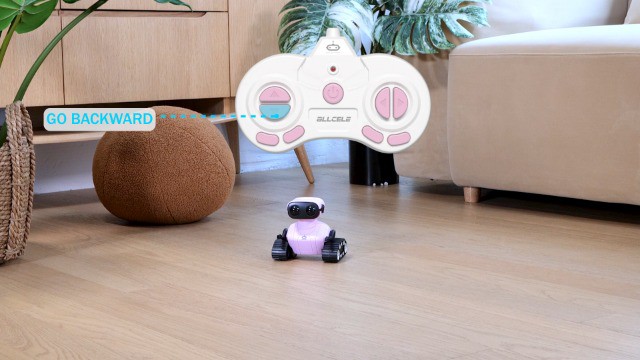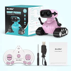 ALLCELE Robot Toys, Rechargeable Kids RC Robots for Girls & Boys, Remote Control Toy with LED Eyes & Music, for Children Age 3+ Years Old - Pink