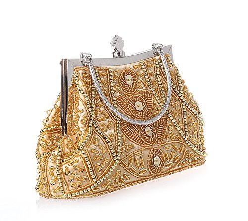 HONGCI Glitter Fashion Beaded Sequin Pearl Clutch Bag for Women - Vintage Beaded Evening Bag, Bridal Bag, Clutch Handbag for Wedding, Party, Prom