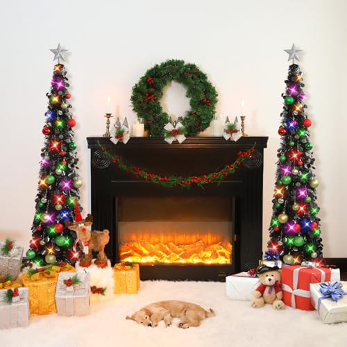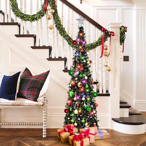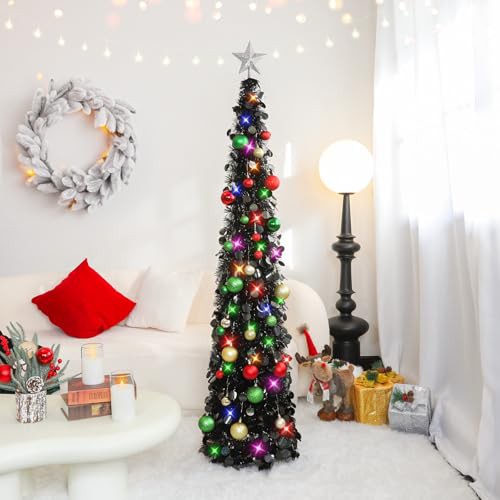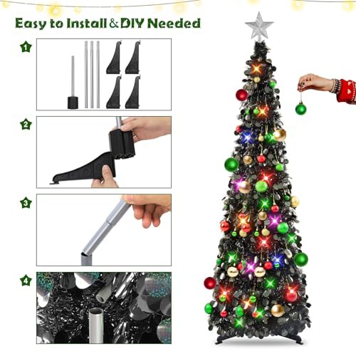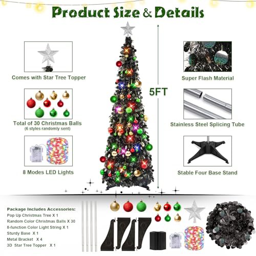 MACTING Christmas Tree, 5ft Collapsible Pop up Christmas Tinsel Tree with Stand Tinsel Coastal Artificial Christmas Trees for Xmas Indoor Outdoor Decor