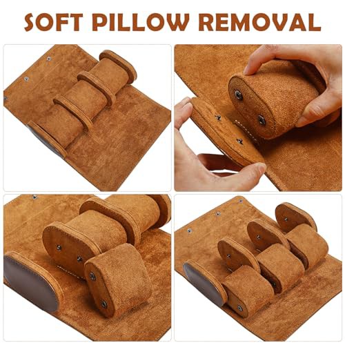 iplusmile Watch Box for Men - Watch Roll Case 3 Slot - Leather Watch Case Organizer - Elastic PU Material Vintage Display Case Storage for Watch Jewelry