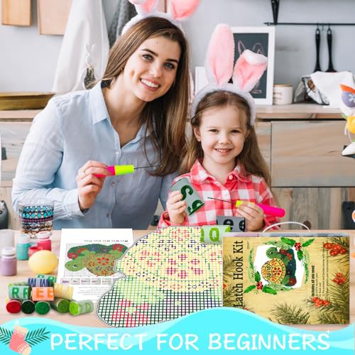 Latch Hook Kit for Adults Kids Turtle DIY Rug Making Kits with Color Preprinted Canvas, Crafts Needlework Arts for Home Decoration Festival Gift 20X15inch