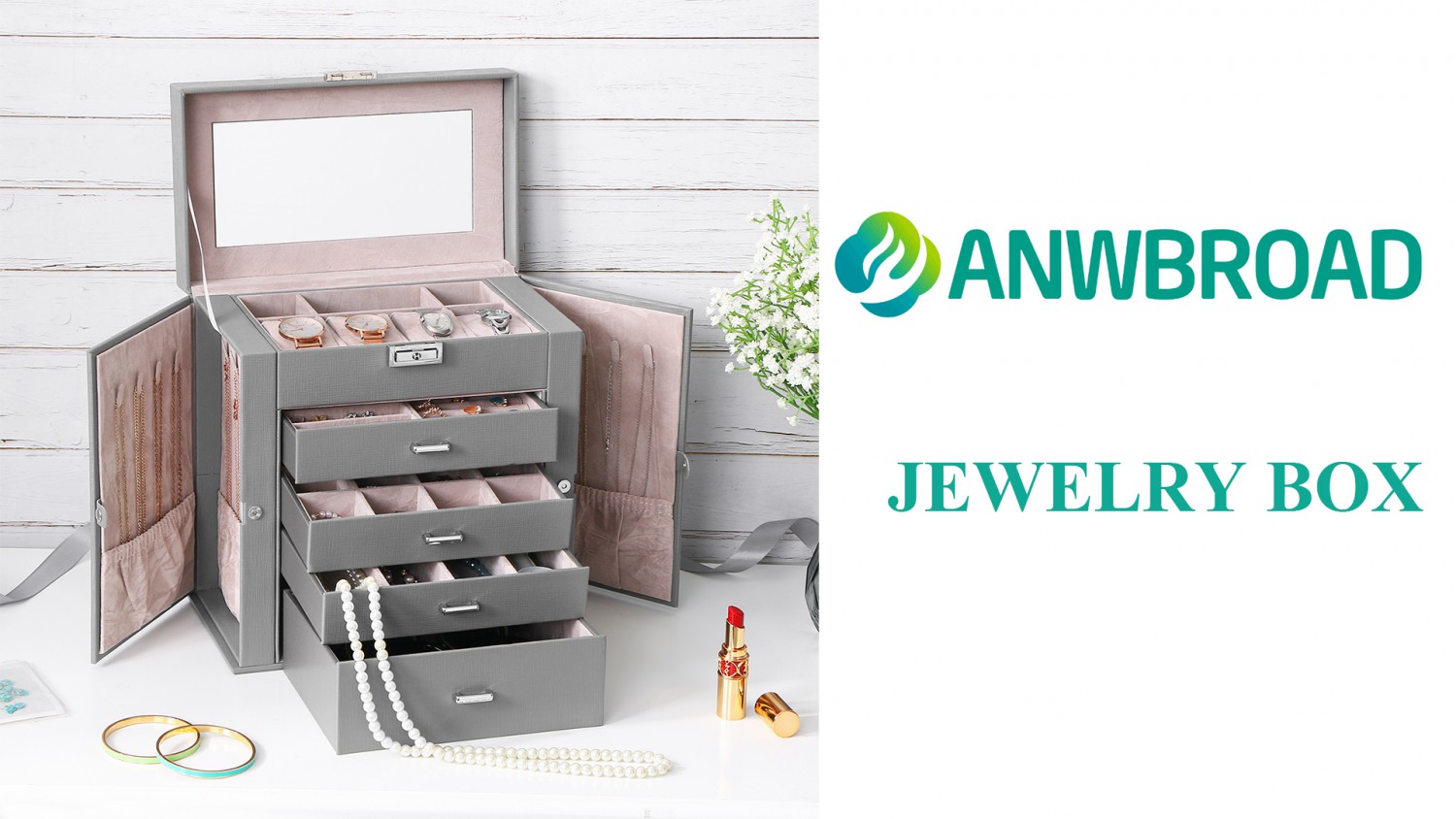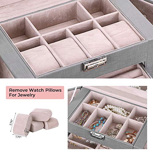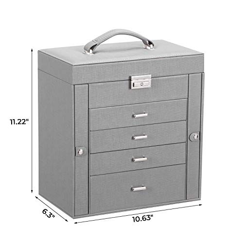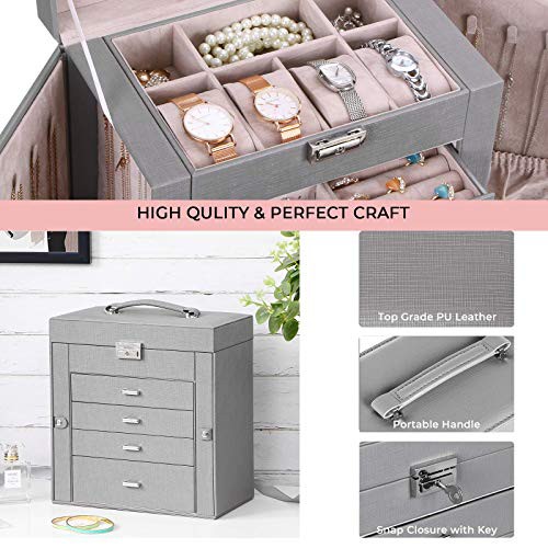 ANWBROAD Jewellery Box for Women Large Jewellery Organiser Box for All Your Jewellery Mirrored and Lockable Necklaces Rings Earrings Bracelets Watches Jewellery Case Gift JJB003H