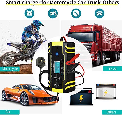 ['WIDE RANGE OF APPLICATIONS: The car battery charger is suitable for 12V and 24V lead-acid battery from 6Ah-150Ah (12V), 6Ah-100Ah (24V), including AGM, Calcium, Gel, MF, SLA, VRLA, WET batteries. Ideal for charging and repairs cars, trucks, motorcycles, lawn mowers, boats, ATV, SUV, etc. Input voltage: 110-265V.', 'WIDE RANGE OF APPLICATIONS: The car battery charger is suitable for 12V and 24V lead-acid battery from 6Ah-150Ah (12V), 6Ah-100Ah (24V), including AGM, Calcium, Gel, MF, SLA, VRLA, WET batteries. Ideal for charging and repairs cars, trucks, motorcycles, lawn mowers, boats, ATV, SUV, etc. Input voltage: 110-265V.', 'WIDE RANGE OF APPLICATIONS: The car battery charger is suitable for 12V and 24V lead-acid battery from 6Ah-150Ah (12V), 6Ah-100Ah (24V), including AGM, Calcium, Gel, MF, SLA, VRLA, WET batteries. Ideal for charging and repairs cars, trucks, motorcycles, lawn mowers, boats, ATV, SUV, etc. Input voltage: 110-265V.', 'WIDE RANGE OF APPLICATIONS: The car battery charger is suitable for 12V and 24V lead-acid battery from 6Ah-150Ah (12V), 6Ah-100Ah (24V), including AGM, Calcium, Gel, MF, SLA, VRLA, WET batteries. Ideal for charging and repairs cars, trucks, motorcycles, lawn mowers, boats, ATV, SUV, etc. Input voltage: 110-265V.', 'WIDE RANGE OF APPLICATIONS: The car battery charger is suitable for 12V and 24V lead-acid battery from 6Ah-150Ah (12V), 6Ah-100Ah (24V), including AGM, Calcium, Gel, MF, SLA, VRLA, WET batteries. Ideal for charging and repairs cars, trucks, motorcycles, lawn mowers, boats, ATV, SUV, etc. Input voltage: 110-265V.']