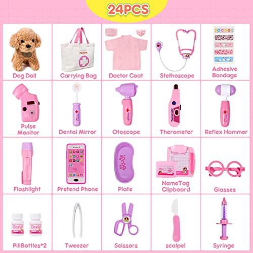 MELAND Doctors Set for Kids - Children Pet Vet Care Play Set with Doctor Costume, Plush Dog, Pretend Role Play Medical Kit Toys Gifts for 3 4 5 6 Year Old Toddlers
