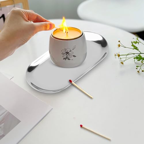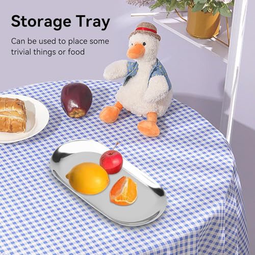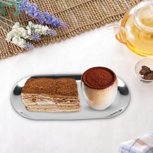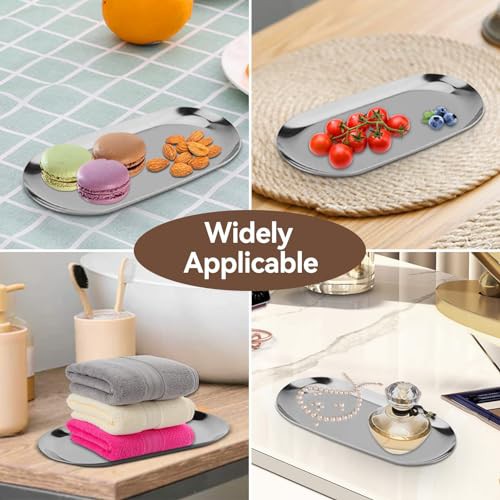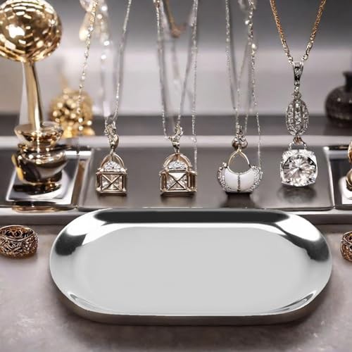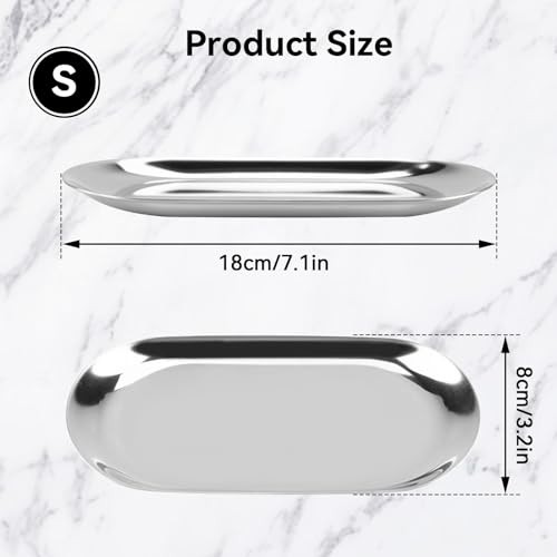 HERCHR Silver Oval Stainless Steel Trinket Tray,Serving Tray,Bathroom Tray,Oval Towel Tray Cosmetics Jewelry Organizer Fruit Cake Plate Silver Snack Tea Key Tray Candle Plates,7.1x3.2inch