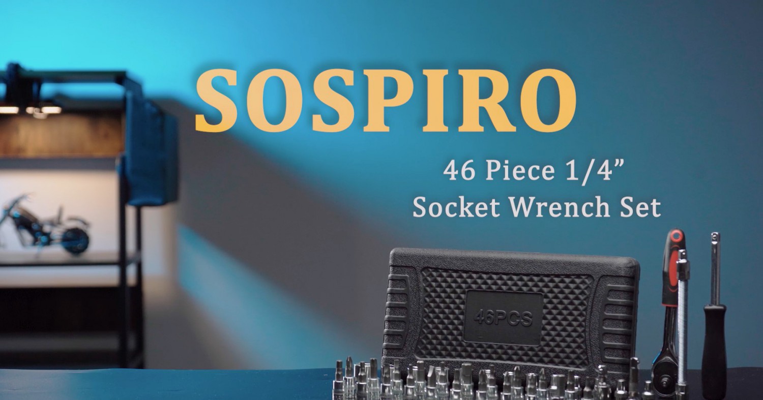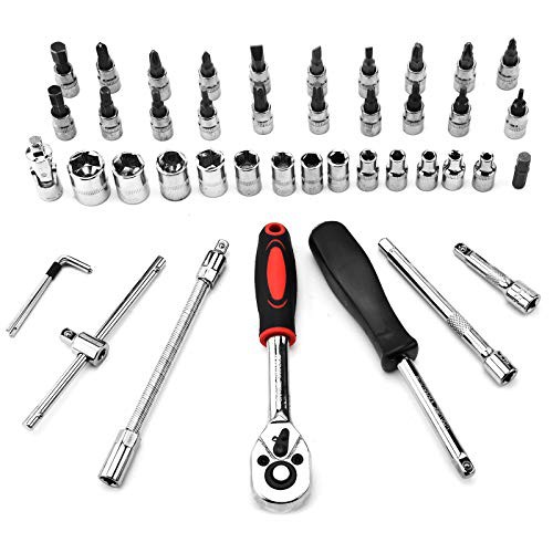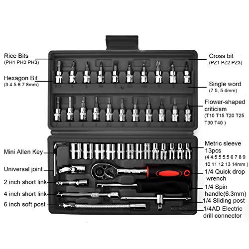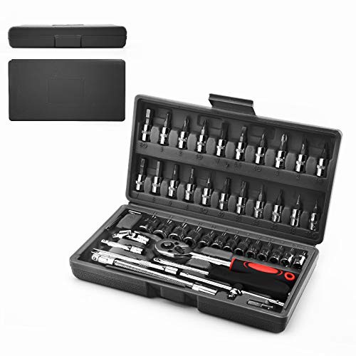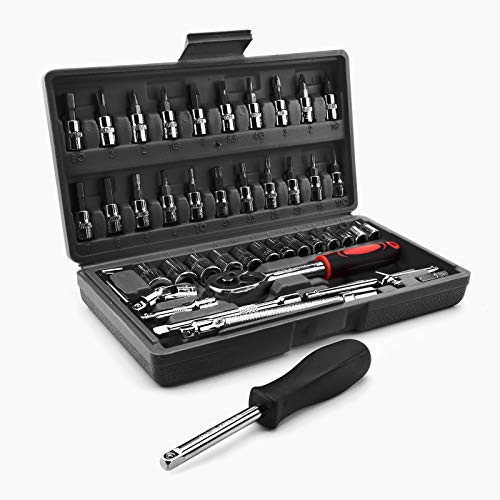 SOSPIRO 46 Piece 1/4 inch Socket Wrench Set Metric Tool Kit with Wrench Handle Chrome Vanadium Ratchet Screwdriver Socket Set for Car Motorcycle Repair