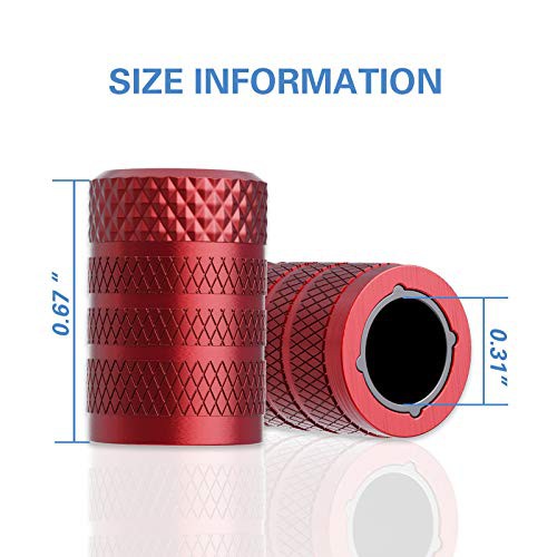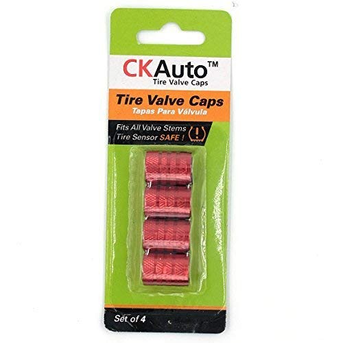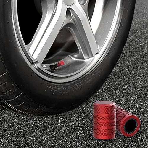 CKAuto Tire Valve Stem Caps, Red, 4 pcs/Pack, Anodized Aluminium Tire Valve Cap Set, Corrosion Resistant, Universal Stem Covers for Cars Trucks Motorcycles SUVs and Bikes