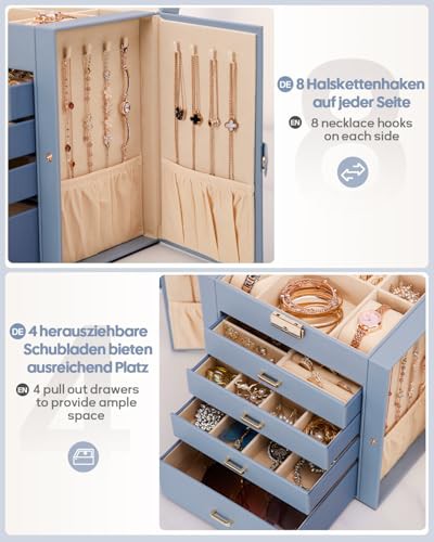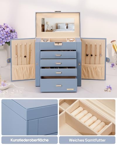 ['Good workmanship: the large jewellery box is made of high-quality MDF and faux leather, with soft velvet lining to effectively protect your valuables from damage.', 'Good workmanship: the large jewellery box is made of high-quality MDF and faux leather, with soft velvet lining to effectively protect your valuables from damage.', 'Good workmanship: the large jewellery box is made of high-quality MDF and faux leather, with soft velvet lining to effectively protect your valuables from damage.', 'Good workmanship: the large jewellery box is made of high-quality MDF and faux leather, with soft velvet lining to effectively protect your valuables from damage.', 'Good workmanship: the large jewellery box is made of high-quality MDF and faux leather, with soft velvet lining to effectively protect your valuables from damage.']