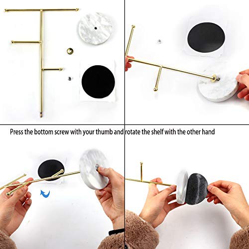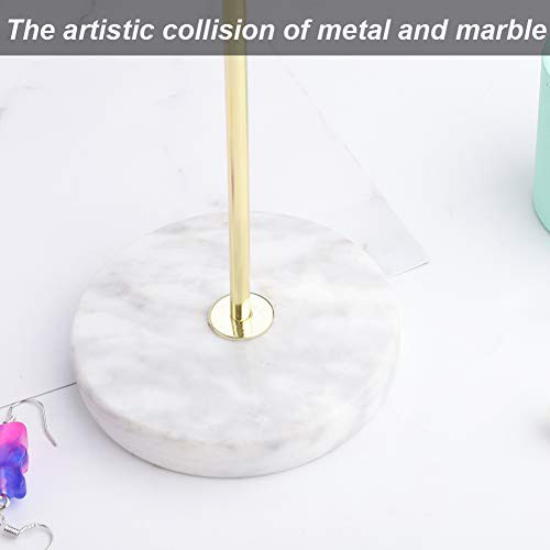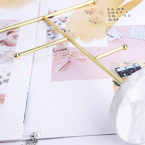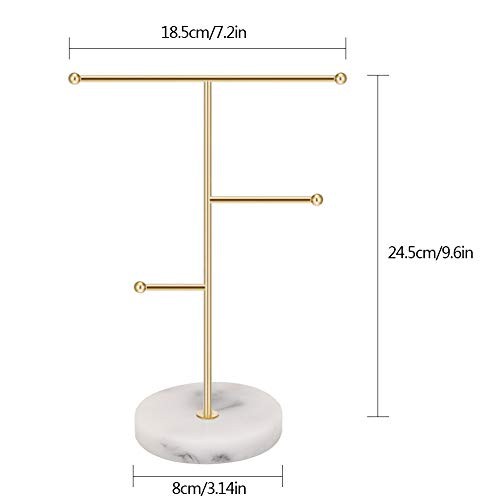 Jewelry Organizer,Metal T-Bar Necklace Display Stand Earrings Holder for Home, Hanging Pendant Rack with Marble Pattern Round Tray for Bracelets Rings Watches