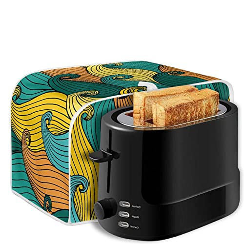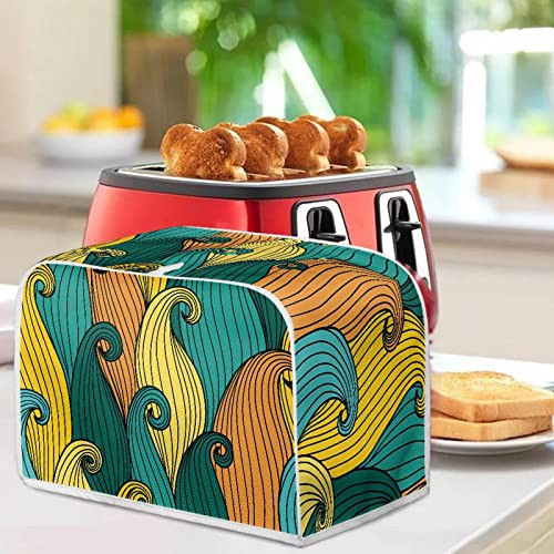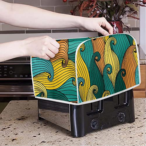 Kuiaobaty Novelty Spiral Art Cover for Toaster 2/4 Slice, Teal Yellow Washable Bakeware Protector, Anti Fingerprint Protection