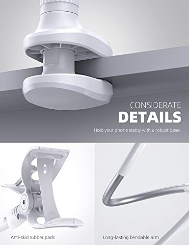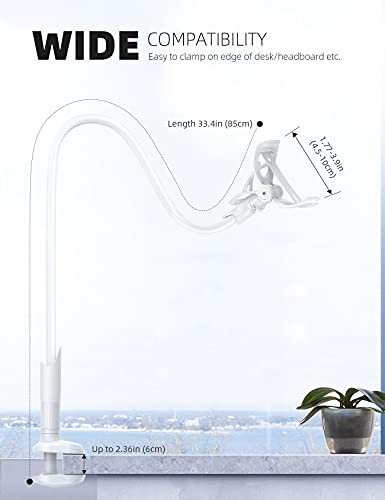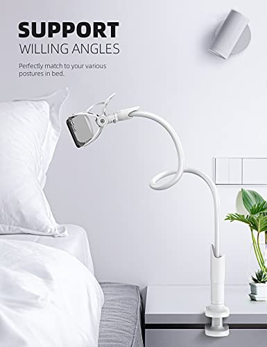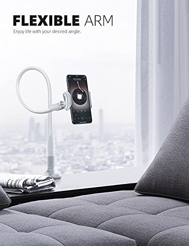 Lamicall Gooseneck Phone Holder, Flexible Holder for Bed - Lazy Arm 360 Adjustable Clamp Bracket for iPhone 16 15 14 Pro Max Plus, 13 12 Pro Max Mini, 11 Pro Xs XR X, Samsung S23, Smartphones - White