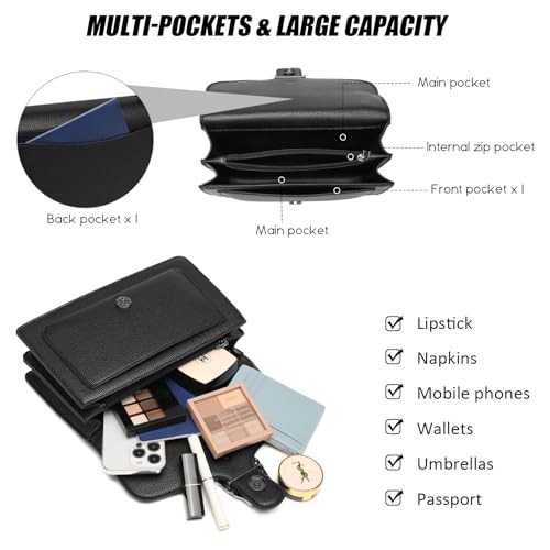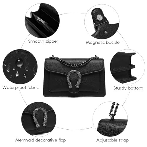 Travistar Leather Crossbody Bags for Women - Small Crossbody Purse Black Purses for Women Trendy Shoulder Bag Designer Handbags Cross Body Bag Clutch Purses Chain Purse Satchel Purses Evening Bag