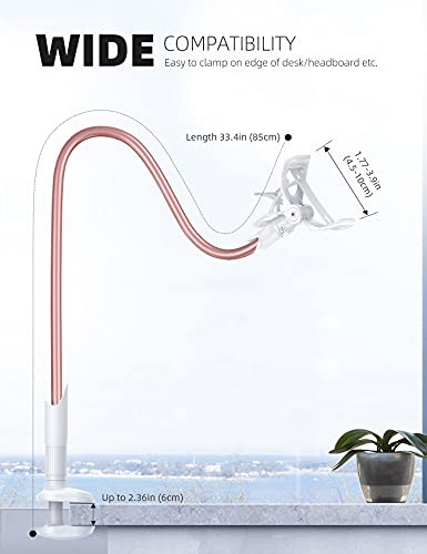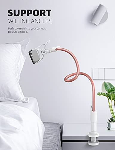 Gooseneck Phone Holder, Lamicall Flexible Holder for Bed - Lazy Arm 360 Adjustable Clamp Bracket for iPhone 16 15 14 Pro Max Plus, 13 12 Pro Max Mini, 11 Pro Xs XR X 8, Samsung S23, Smartphones - Rose