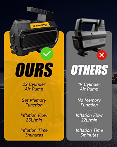['2X FASTER INFLATION- Our digital tyre inflator use a high-speed pure copper designed turbocharger core that is 2x faster. For reference, it only takes about 3 minutes to inflate a 185/65 R15 car tire from 0-35 PSI (25PSI-35PSI about 1 min) at 25L/min. NOTE: If the digital tyre inflator continues to inflate for a while, please rest for a while.', '2X FASTER INFLATION- Our digital tyre inflator use a high-speed pure copper designed turbocharger core that is 2x faster. For reference, it only takes about 3 minutes to inflate a 185/65 R15 car tire from 0-35 PSI (25PSI-35PSI about 1 min) at 25L/min. NOTE: If the digital tyre inflator continues to inflate for a while, please rest for a while.', '2X FASTER INFLATION- Our digital tyre inflator use a high-speed pure copper designed turbocharger core that is 2x faster. For reference, it only takes about 3 minutes to inflate a 185/65 R15 car tire from 0-35 PSI (25PSI-35PSI about 1 min) at 25L/min. NOTE: If the digital tyre inflator continues to inflate for a while, please rest for a while.', '2X FASTER INFLATION- Our digital tyre inflator use a high-speed pure copper designed turbocharger core that is 2x faster. For reference, it only takes about 3 minutes to inflate a 185/65 R15 car tire from 0-35 PSI (25PSI-35PSI about 1 min) at 25L/min. NOTE: If the digital tyre inflator continues to inflate for a while, please rest for a while.', '2X FASTER INFLATION- Our digital tyre inflator use a high-speed pure copper designed turbocharger core that is 2x faster. For reference, it only takes about 3 minutes to inflate a 185/65 R15 car tire from 0-35 PSI (25PSI-35PSI about 1 min) at 25L/min. NOTE: If the digital tyre inflator continues to inflate for a while, please rest for a while.']