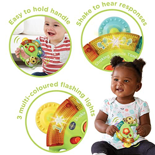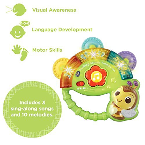 VTech Baby Shaking Sounds Tambourine, Sensory Toy with Lights, Music, Colours, Interactive Gift for Boys & Girls 3, 6, 9, 12, 24 months, English Version