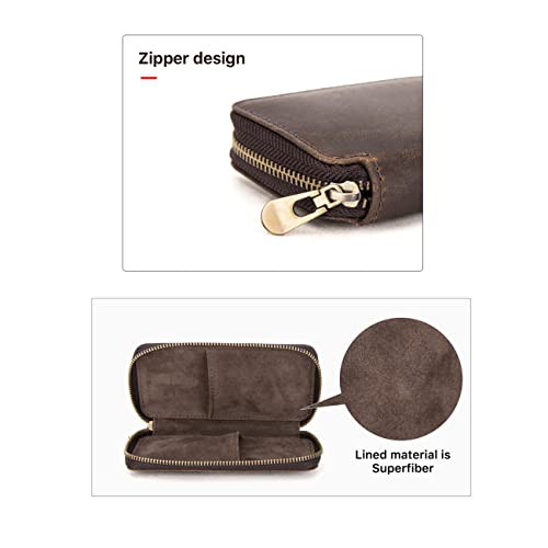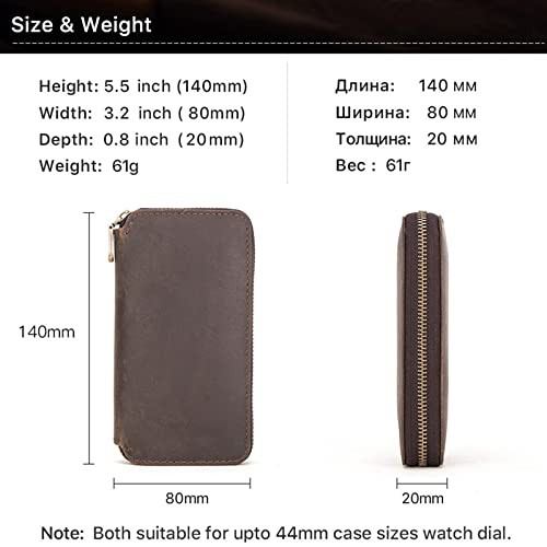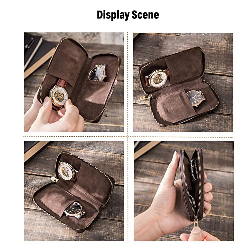 Vintage Genuine Leather Watch Storage Pouch, 2-Slot Storage Organizer Portable Travel Protective Bag Case for Men Women Wristwatch Jewelry