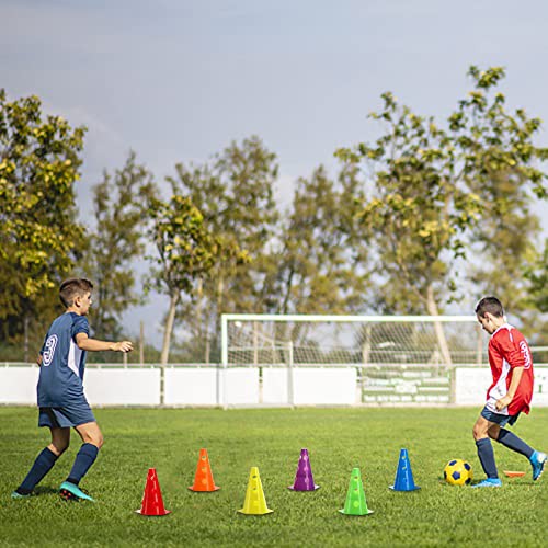 Suwimut 24 Pack Plastic Agility Cones, 23cm / 9 Inch Indoor Outdoor Sports Soccer Flexible Cone Sets for Training, Party, Activity, Traffic, Drills, Basketball, Soccer, Assorted Colors