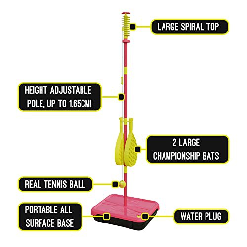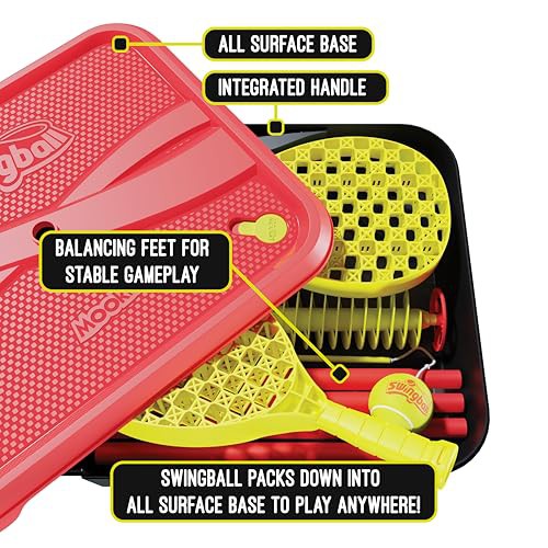 Classic All Surface Swingball Set, Real Tennis Ball, Championship Bats, All Surface Base with Integrated Carry Case for Transportation, For ages 6+ to Adult, Classic Outdoor Games, Red and Yellow