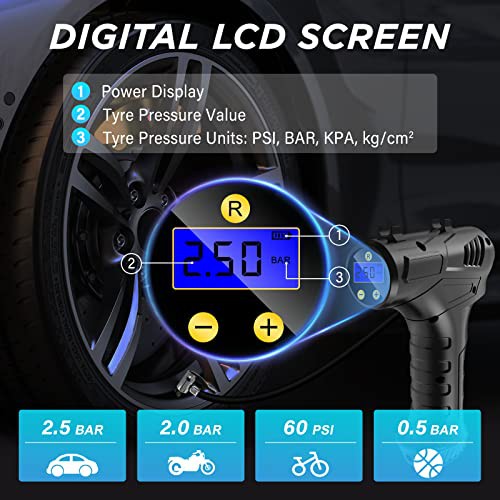 ['Cordless & Handheld Design: To make tyre inflation more convenient, we have designed a car tyre pump electric Wireless design appearance is in line with ergonomics that can directly inflate tires by holding it in your hand, Inflating just got easier!', 'Cordless & Handheld Design: To make tyre inflation more convenient, we have designed a car tyre pump electric Wireless design appearance is in line with ergonomics that can directly inflate tires by holding it in your hand, Inflating just got easier!', 'Cordless & Handheld Design: To make tyre inflation more convenient, we have designed a car tyre pump electric Wireless design appearance is in line with ergonomics that can directly inflate tires by holding it in your hand, Inflating just got easier!', 'Cordless & Handheld Design: To make tyre inflation more convenient, we have designed a car tyre pump electric Wireless design appearance is in line with ergonomics that can directly inflate tires by holding it in your hand, Inflating just got easier!', 'Cordless & Handheld Design: To make tyre inflation more convenient, we have designed a car tyre pump electric Wireless design appearance is in line with ergonomics that can directly inflate tires by holding it in your hand, Inflating just got easier!']