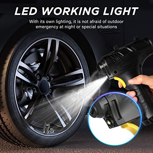 Skeufy Cordless Tyre Inflator Air Compressor, 12V USB Rechargeable Battery Portable Handheld Electric Digital Tyre Pump with LED Light and 3 Nozzle Adaptors for Car Motorcycle Bicycle
