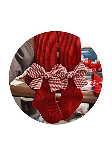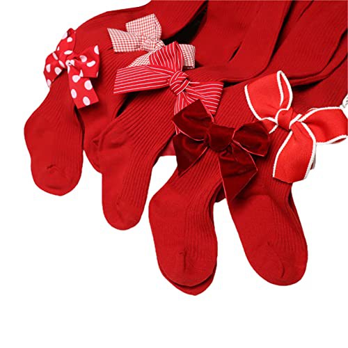 YILEEGOO Baby Toddler Girls Tights Rib Knit Pantyhose With Velvet Bows Chritsmas Valentine's Day Leggings Pants Infant Stockings