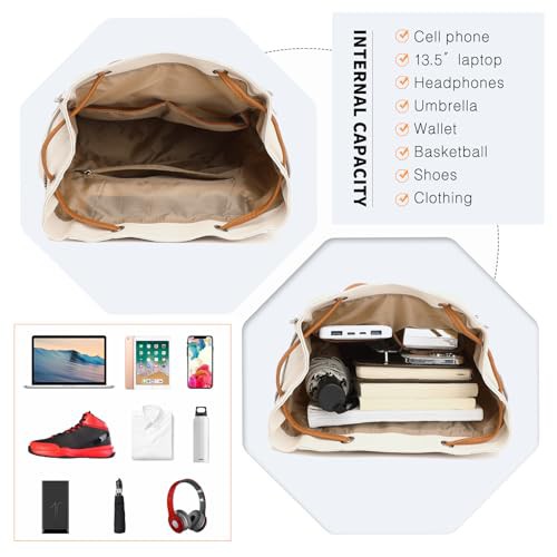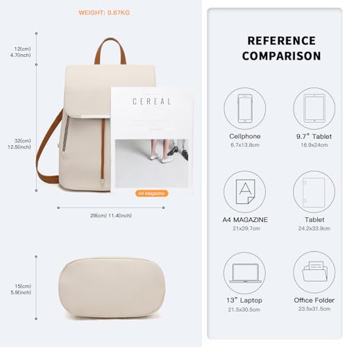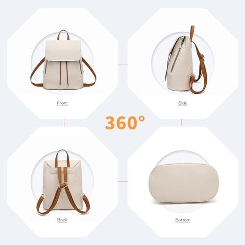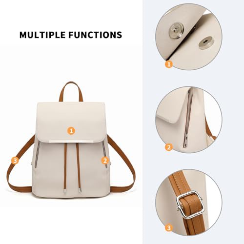 Miss Lulu Backpack Womens Fashion Backpacks Beige&Brown Backpack Ladies PU Leather Waterproof Daypack Medium School Work Travel