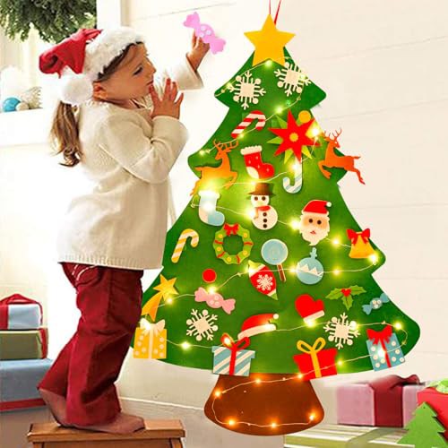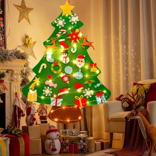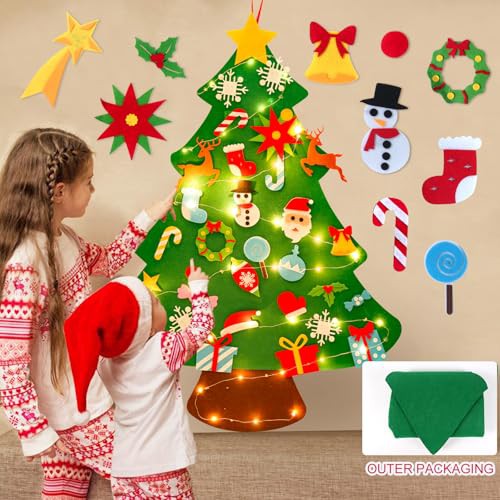 Fuzzy Felt Felt Christmas Tree Decorations – DIY Felt Christmas Tree For Toddlers With 34Pcs Detachable Christmas Ornaments,Wall Christmas Tree,Kids Xmas Tree For Home Door Window Christmas Decoration