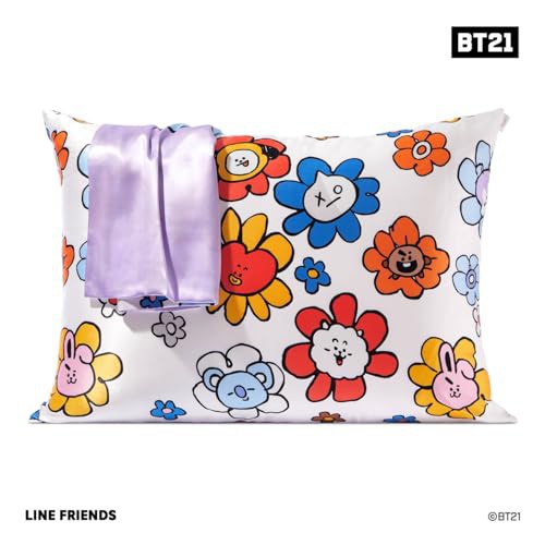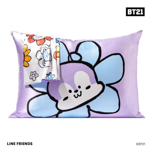 BT21 x Kitsch Satin Pillowcase with Zipper Closure, Softer Than Mulberry Silk Pillow Cases Standard Size 1 Pack, Smooth Cooling Pillow Covers Queen for Hair, Skin Health & Beauty Sleep 19x26 in, Mang