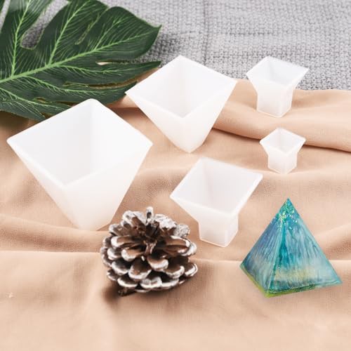 WANDIC Casting Molds, 5 Pcs 5 Sizes of Pyramid Silicone Molds Silicone Resin Craft Mold Crystal Epoxy Molds for DIY Craft Ornament Art and Home Decoration