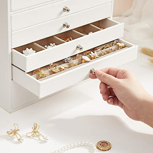 SONGMICS Extra Large Jewellery Box, 10-Layer Storage Case, Faux Leather Organiser, with Drawer, White JBC10W, Bianco, 40*39*20.5cm