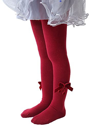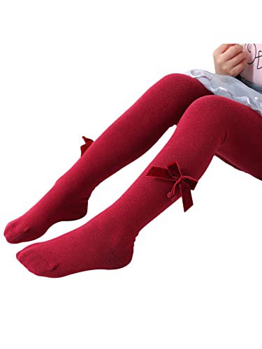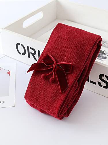 YILEEGOO Baby Toddler Girls Tights Rib Knit Pantyhose With Velvet Bows Chritsmas Valentine's Day Leggings Pants Infant Stockings