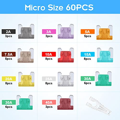 ['【High cost-effective fuse kit】-- The kit includes 60pcs micro size fuses (Low Profile Mini Fuse) and a fuse puller. The car fuses have 11 current specifications (2A /3A / 5A/ 7.5A/ 10A/ 15A/ 20A/ 25A/ 30A/ 35A/40A).', '【High cost-effective fuse kit】-- The kit includes 60pcs micro size fuses (Low Profile Mini Fuse) and a fuse puller. The car fuses have 11 current specifications (2A /3A / 5A/ 7.5A/ 10A/ 15A/ 20A/ 25A/ 30A/ 35A/40A).', '【High cost-effective fuse kit】-- The kit includes 60pcs micro size fuses (Low Profile Mini Fuse) and a fuse puller. The car fuses have 11 current specifications (2A /3A / 5A/ 7.5A/ 10A/ 15A/ 20A/ 25A/ 30A/ 35A/40A).', '【High cost-effective fuse kit】-- The kit includes 60pcs micro size fuses (Low Profile Mini Fuse) and a fuse puller. The car fuses have 11 current specifications (2A /3A / 5A/ 7.5A/ 10A/ 15A/ 20A/ 25A/ 30A/ 35A/40A).', '【High cost-effective fuse kit】-- The kit includes 60pcs micro size fuses (Low Profile Mini Fuse) and a fuse puller. The car fuses have 11 current specifications (2A /3A / 5A/ 7.5A/ 10A/ 15A/ 20A/ 25A/ 30A/ 35A/40A).']