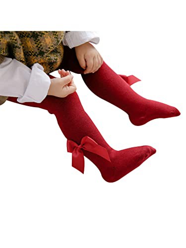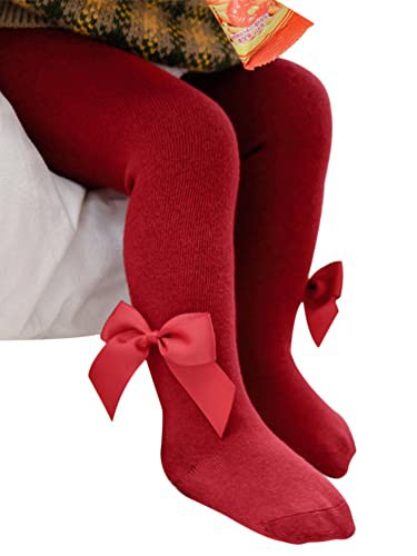 YILEEGOO Baby Toddler Girls Tights Rib Knit Pantyhose With Velvet Bows Chritsmas Valentine's Day Leggings Pants Infant Stockings