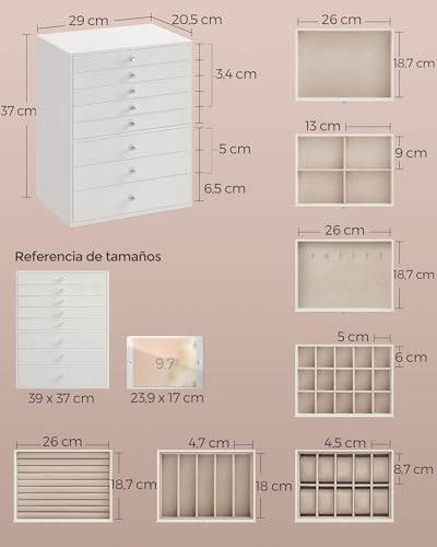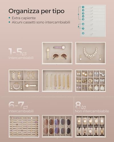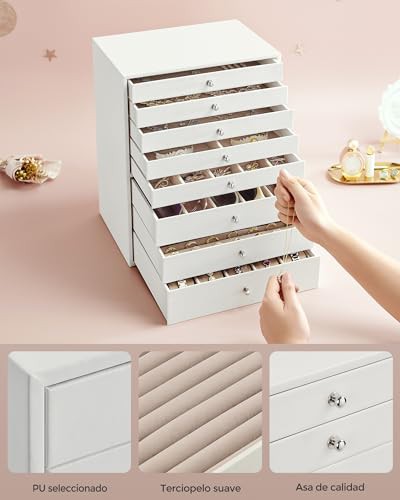 ['[Large, Categorised Storage] Thanks to various compartments in 8 drawers, your jewels and accessories of varying sizes, like bracelets, earrings, necklaces, and rings, will all find their place in this large jewellery box', '[Large, Categorised Storage] Thanks to various compartments in 8 drawers, your jewels and accessories of varying sizes, like bracelets, earrings, necklaces, and rings, will all find their place in this large jewellery box', '[Large, Categorised Storage] Thanks to various compartments in 8 drawers, your jewels and accessories of varying sizes, like bracelets, earrings, necklaces, and rings, will all find their place in this large jewellery box', '[Large, Categorised Storage] Thanks to various compartments in 8 drawers, your jewels and accessories of varying sizes, like bracelets, earrings, necklaces, and rings, will all find their place in this large jewellery box', '[Large, Categorised Storage] Thanks to various compartments in 8 drawers, your jewels and accessories of varying sizes, like bracelets, earrings, necklaces, and rings, will all find their place in this large jewellery box']