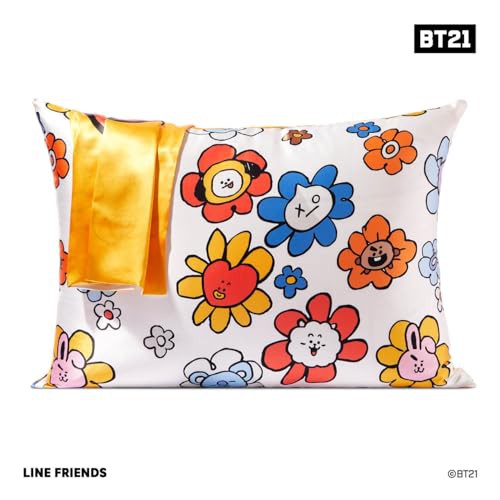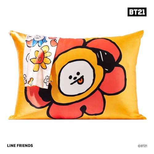 BT21 x Kitsch Satin Pillowcase with Zipper Closure, Softer Than Mulberry Silk Pillow Cases Standard Size 1 Pack, Cooling Pillow Covers Queen for Hair, Skin Health & Beauty Sleep, 19x26 in, Chimmy